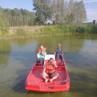 Główną atrakcją było pływanie rowerem wodnym. To wielka frajda podziwiać okoliczności przyrody i pływać takim rowerkiem. Osoby z niepełnosprawnościami nie są w stanie samodzielnie tego zrobić. Dlatego ta atrakcja była naprawdę wyjątkowa. Pogoda pozwoliła spędzić czas w plenerze w dobrych nastrojach.
