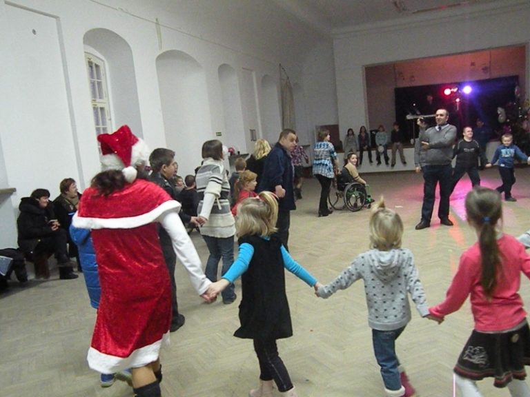 Początek 2015 r., wspólna zabawa mikołajkowa w sali konferencyjnej pałacu Potockich. Kto dostał prezent, komu…