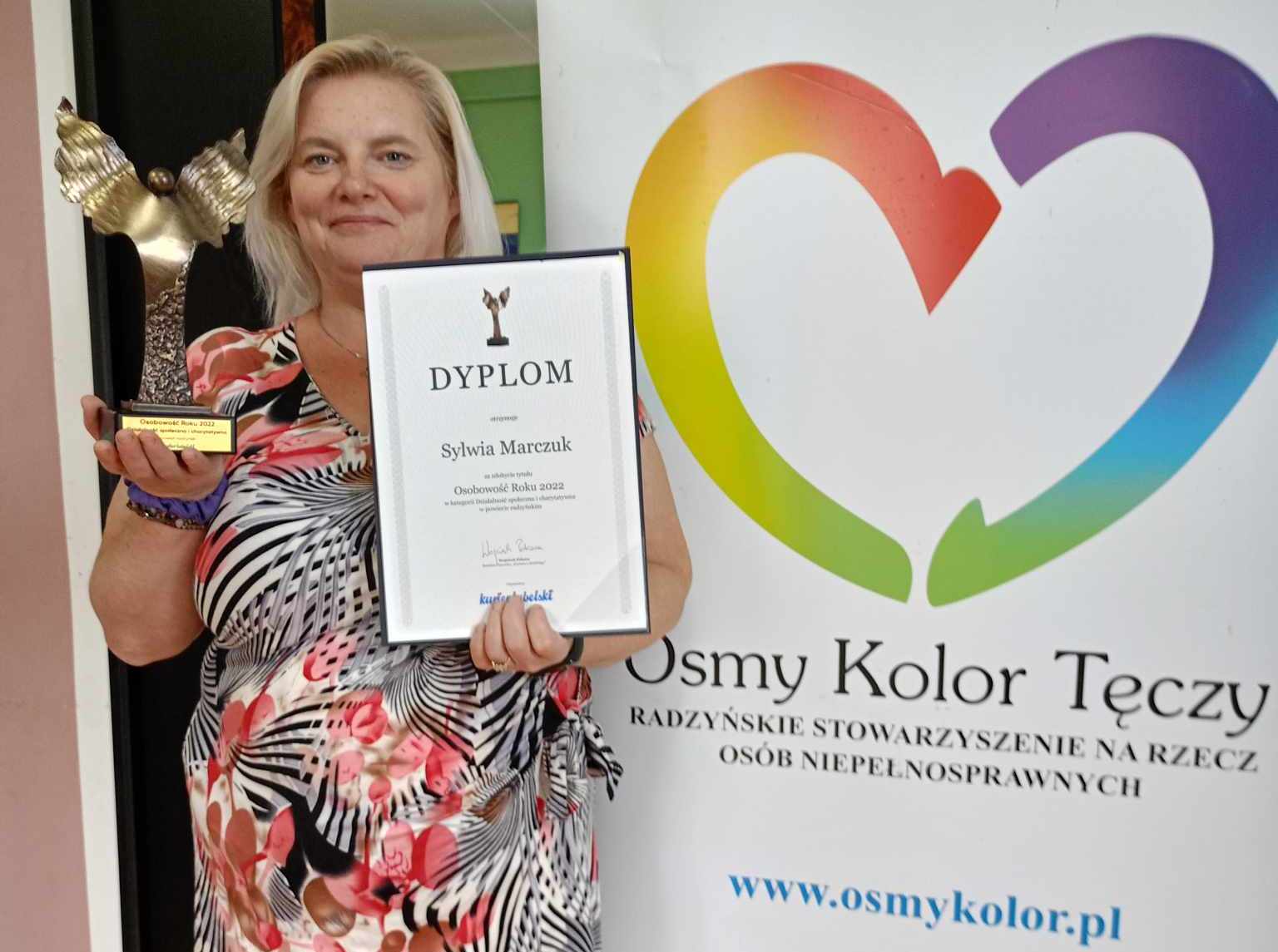 Prezes Radzyńskiego Stowarzyszenia Na Rzecz Osób Niepełnosprawnych, Sylwia Marczuk otrzymała statuetkę „Osobowość Roku 2022”. Gratulujemy!