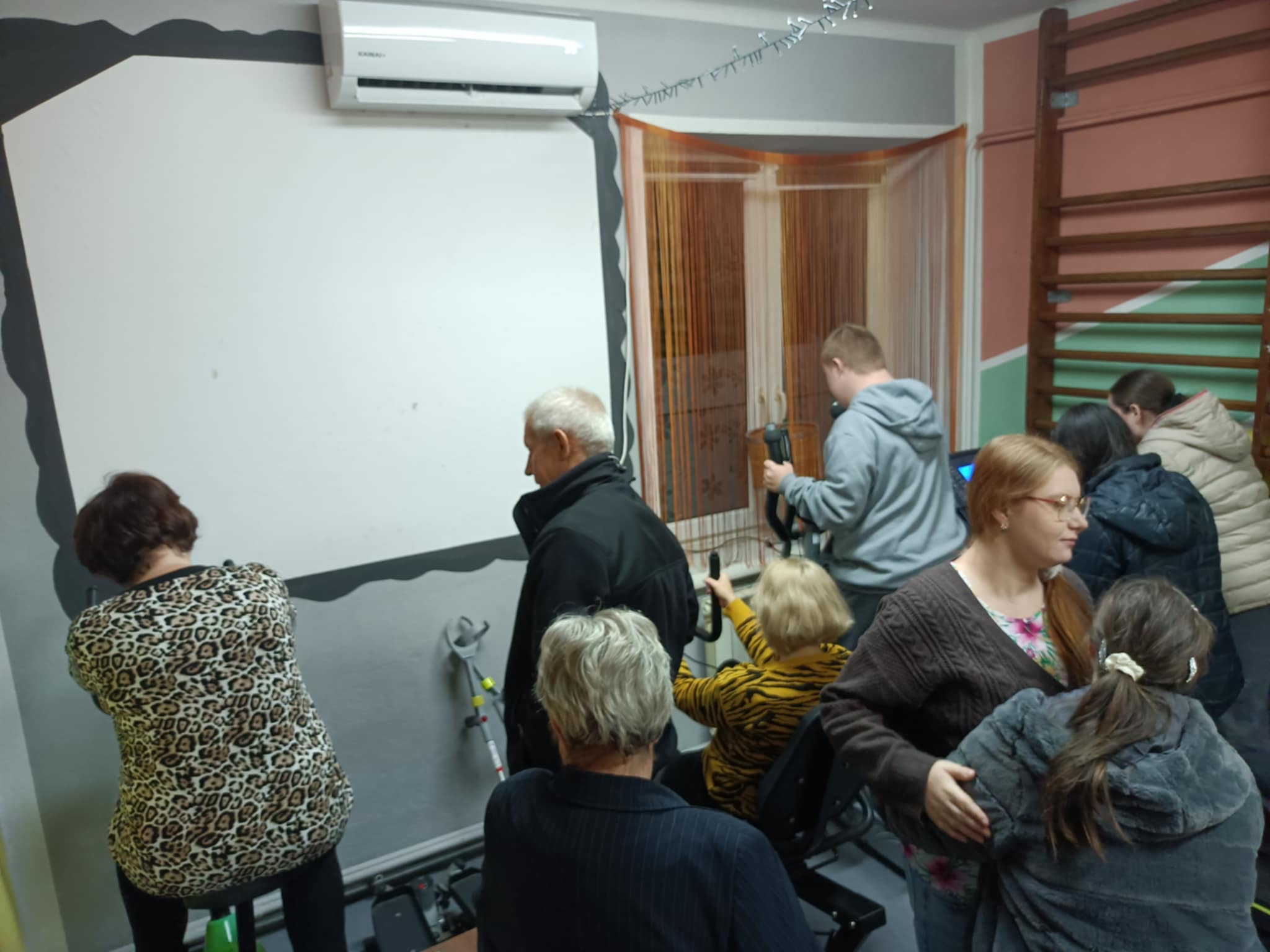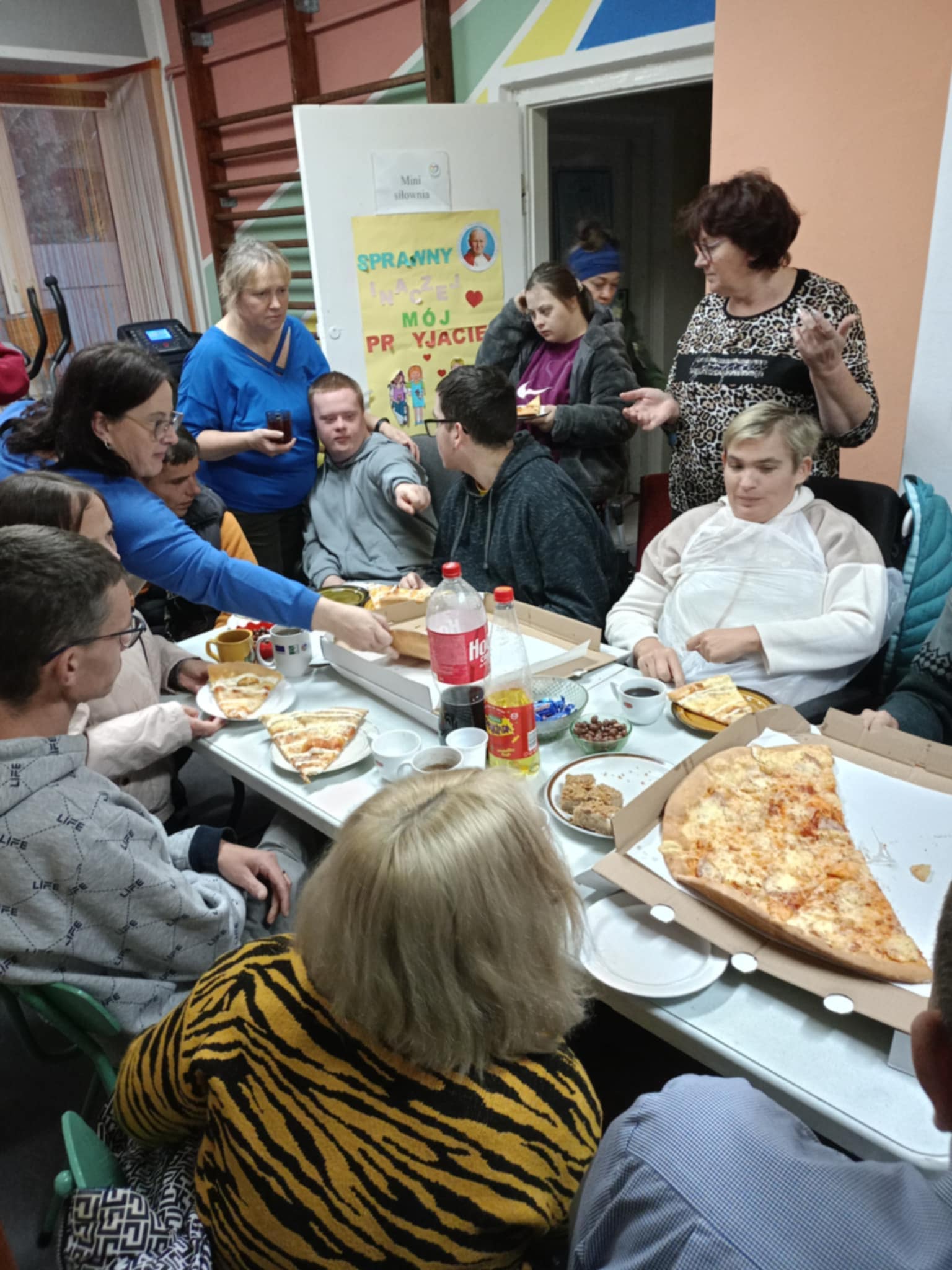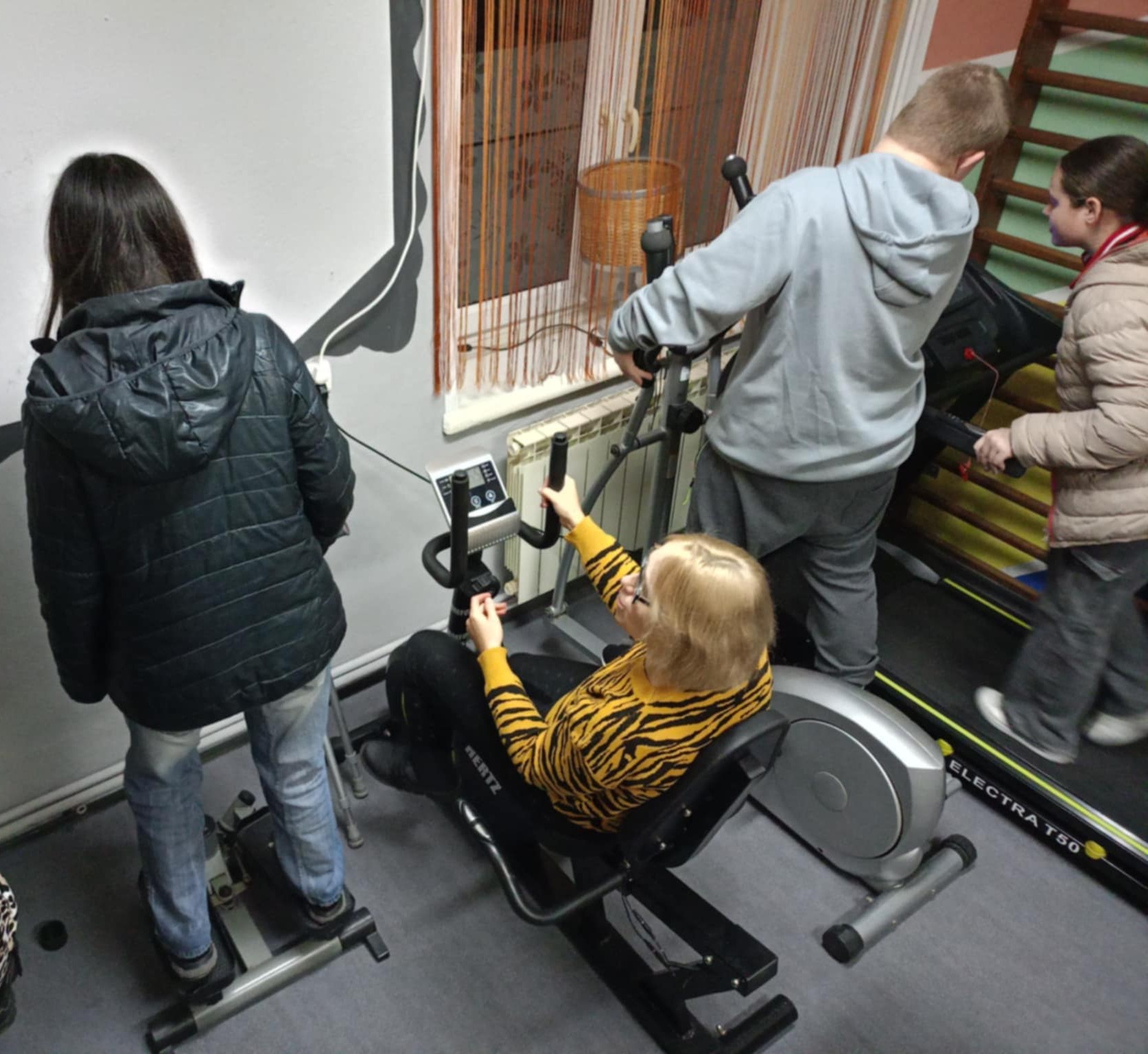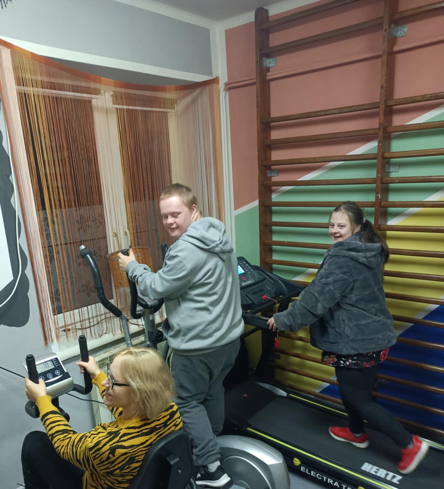 Pamiętamy jednak, że spotkania w stowarzyszeniu nie są tylko przy jedzeniu. W sali stoi też sprzęt sportowy : bieżnia, steper, rower stacjonarny i stacjonarny rower poziomy.